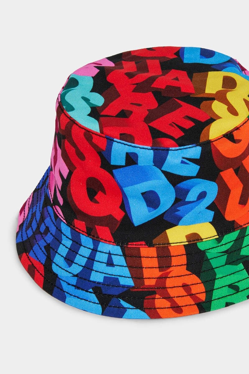 This Cotton Bucket Hat Serves up Playful Style with Its Kaleidoscopic Palette and Bold Dsquared2 Lettering. A Cheerful Companion for Sunny Days – Available in Sizes for All Ages.