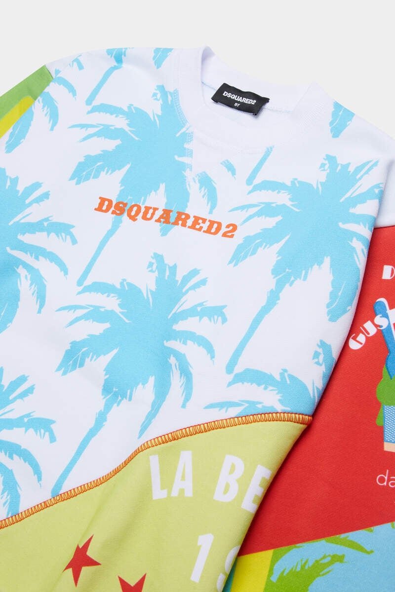 Bring a Burst of Sunshine to Casual Days with This Cotton Crew-Neck Sweatshirt. Its Patchwork of Palm Prints, Slogans and Bold Colours Channels Summer Energy, While Elasticated Trims Keep the Fit Classic and Comfortable.
