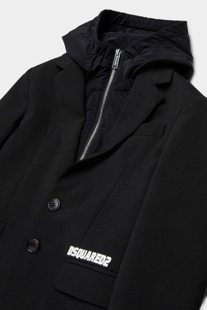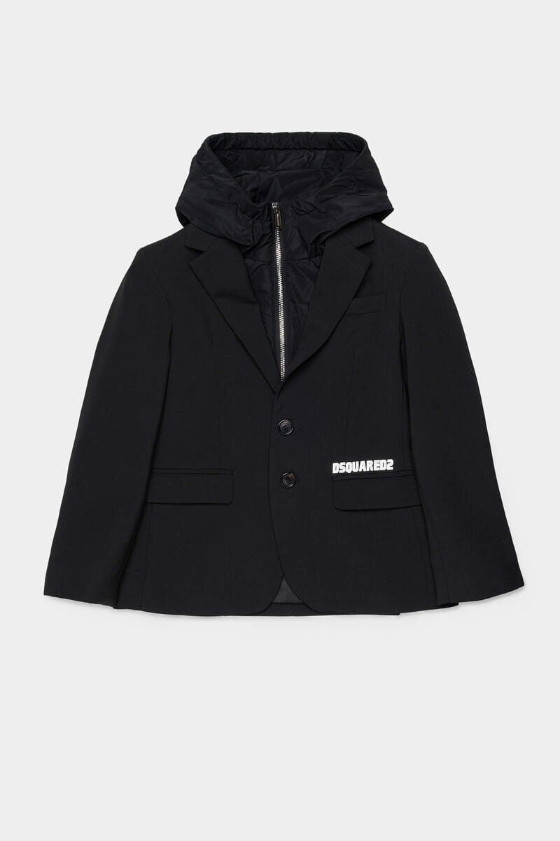 A Laid-Back Take on Tailoring: This Blazer Features a Zipped Hood Layered Underneath, Blurring the Lines Between Smart and Casual Codes. Textured Dsquared2 Lettering Adds a Hit of Unmistakable Brand Appeal.