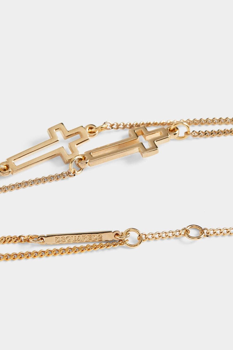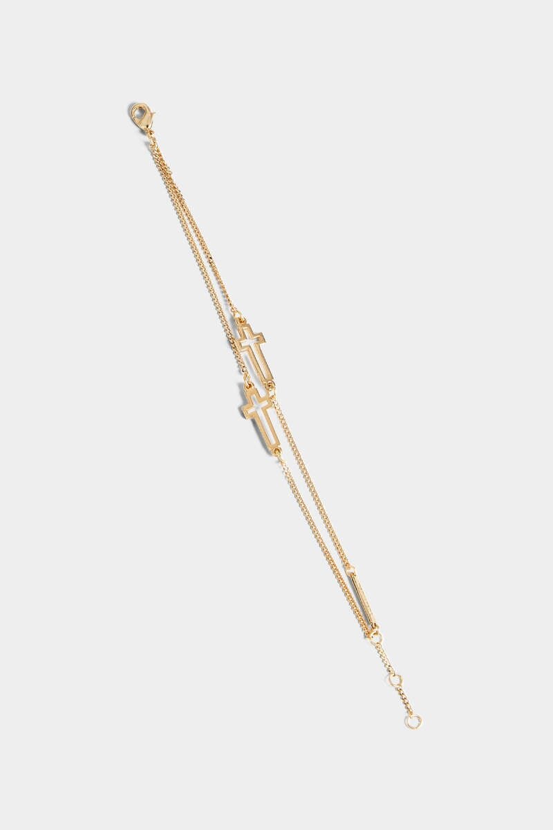 Elegant but Edgy: Make a Statement in This Double-Strand Chain Bracelet, Boasting a Timeless Gold-Tone Finish and Dainty Cross Outline Charms. For Everyday Looks with Attitude.