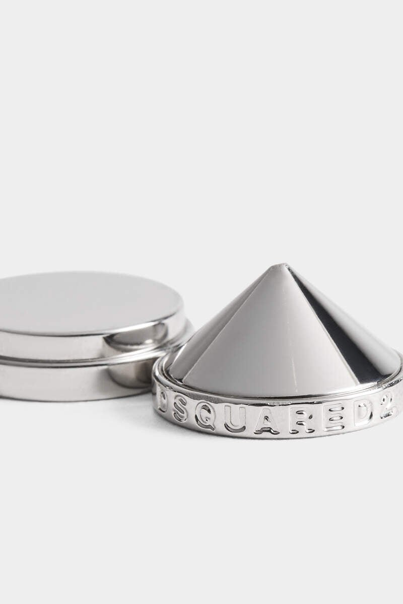 Add Edgy Attitude to Any Outfit with These Conical Metal Stud Earrings, Engraved with Dsquared2 Lettering Around the Outside. Perfect with Formal Ensembles and Casual Looks Alike.