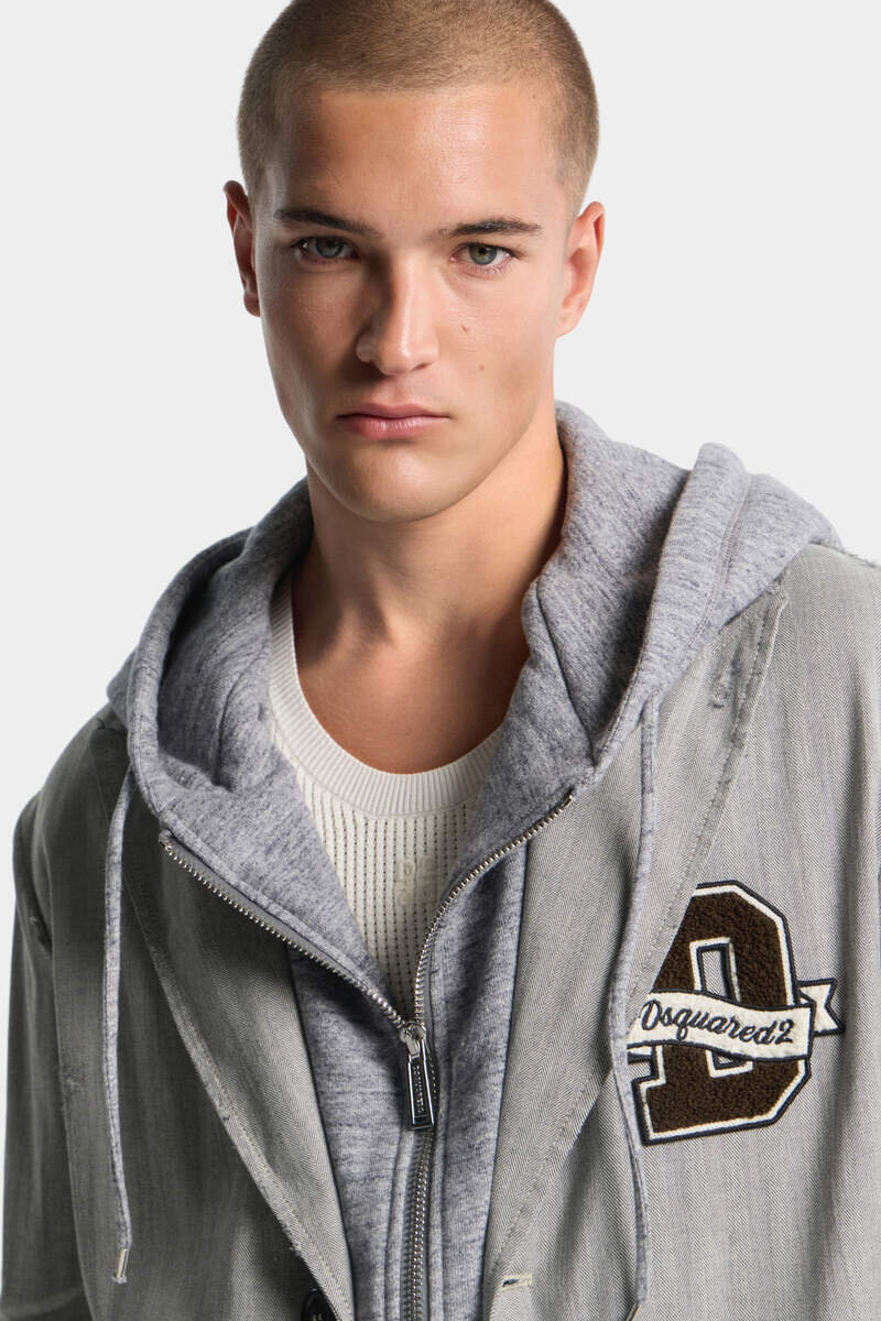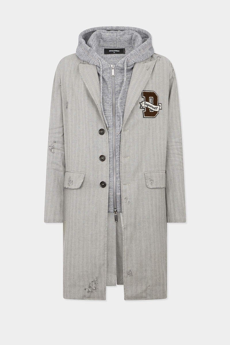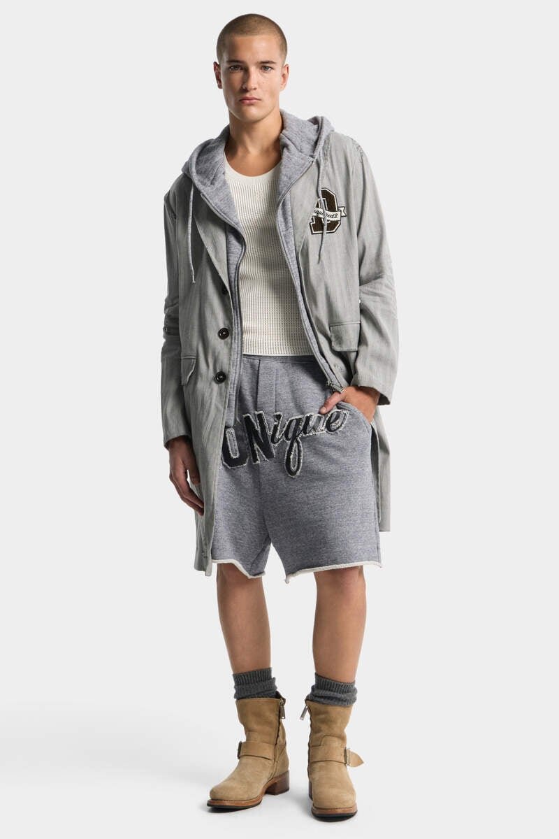 Tailored Elegance with Laid-Back Attitude: This Long Hooded Coat Features a Striking Raised Dsquared2 College-Style Logo. A Distressed Finish Adds That Essential Vintage, Rugged Look.