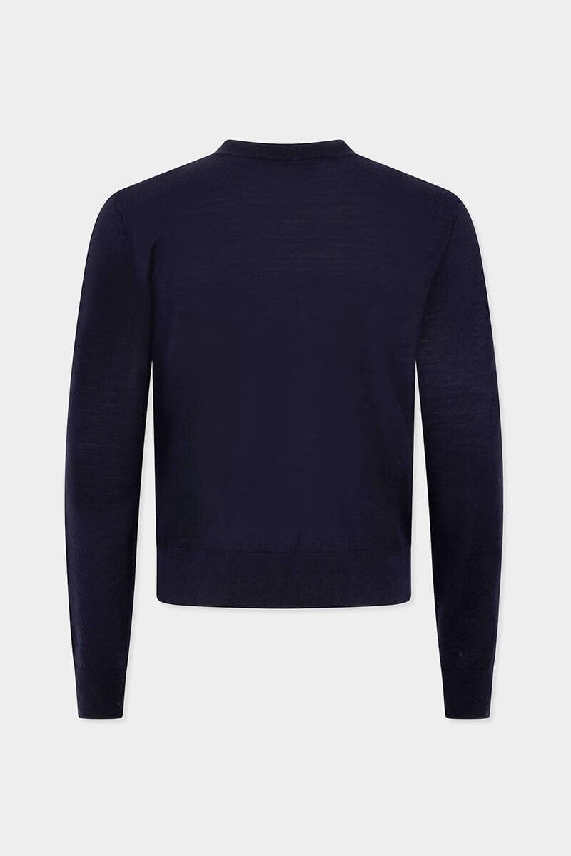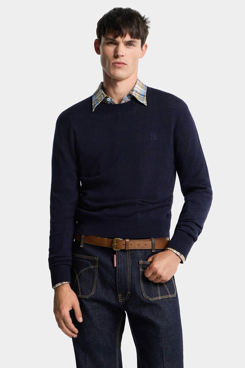 Less is More with This Round-Neck Jumper, Knitted from Cosy Wool and Stitched with Tonal Threads That Outline the Iconic Logo on the Chest. Perfect for Layering over Tees and Collared Shirts.