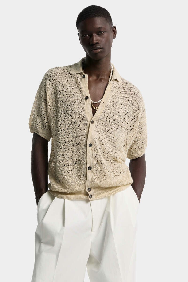 This Button-Through Polo Shirt is Knitted from a Breathable Linen Blend with Openwork Detailing and Ribbed Trims, Adding a Bit of Texture. Layer It over a Tee or Under a Blazer, Depending on the Vibe.