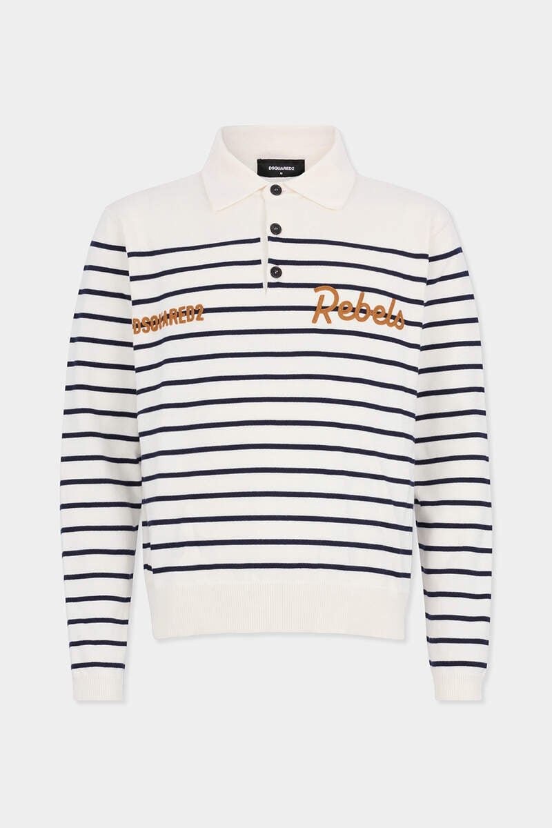 Nautical Nuance Meets Everyday Ease in This Long-Sleeved Polo Shirt, Knitted from Pure Cotton with Timeless Stripes. Complete with the Season’s Signature Embroidery on the Chest for a Signature Finish.