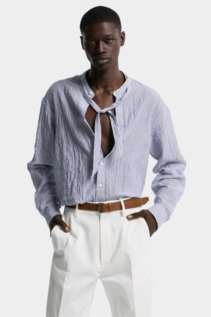 For Effortless Elegance with an Urban Edge, Look No Further. Cut from Breezy Cotton, This Shirt Features Dropped Shoulders, a Mandarin Collar with Slim Ties and a Deliberately Spaced Button Placket – Mixing Classic Codes with Contemporary Elements.
