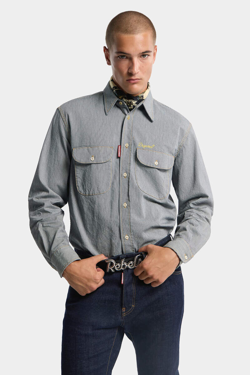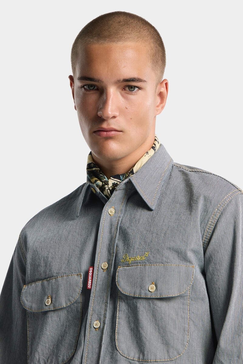 Where Heritage Meets Bold Self-Expression. This Striped Denim Shirt Fuses an Indigo Base with the Trademark Yellow Stitching and Embroidered Dsquared2 Lettering for a Look That’s Anything but Traditional.