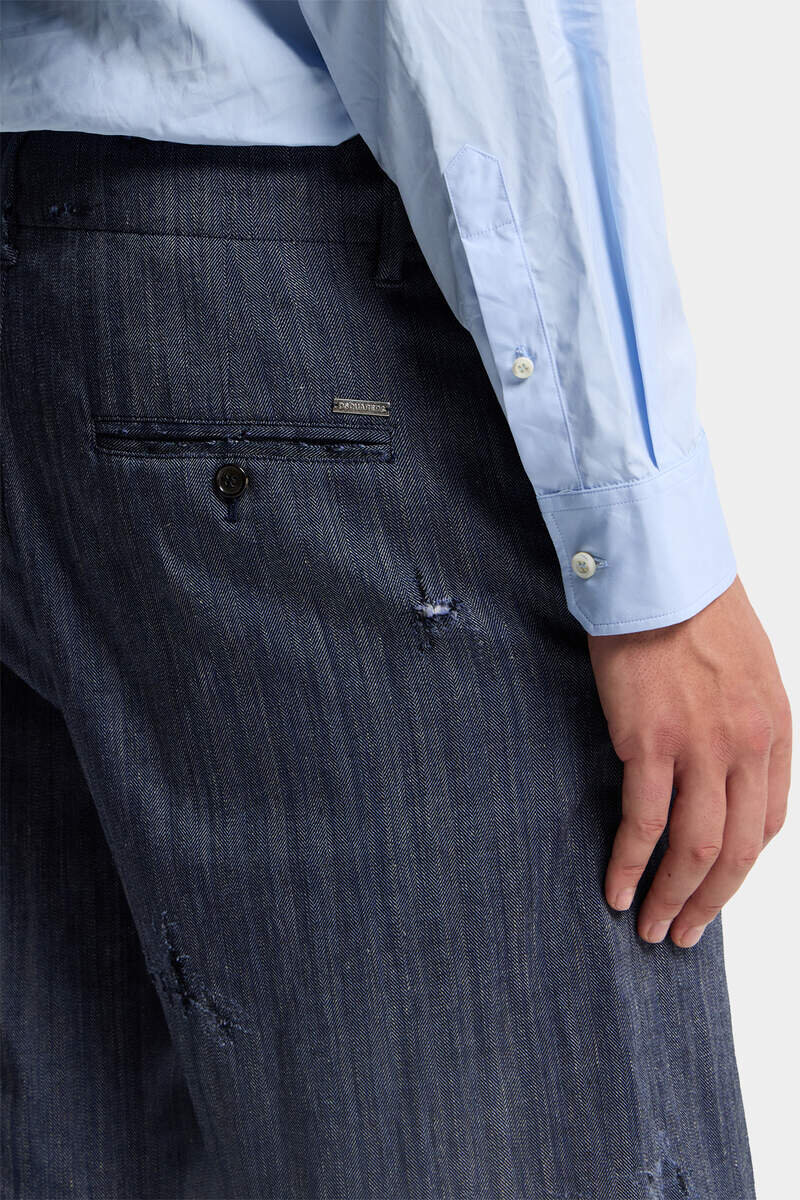 The Dsquared2 Twist on Tailored Summer Style. Crafted in Cotton Herringbone, These Shorts Blend Refined Craftsmanship with Raw Attitude Through Distressed and Frayed Edging. An Upturned Lining Adds a Tailored Finish, Perfect for Styling with a Shirt and Pullover to Bring a Preppy Look with an Edge.