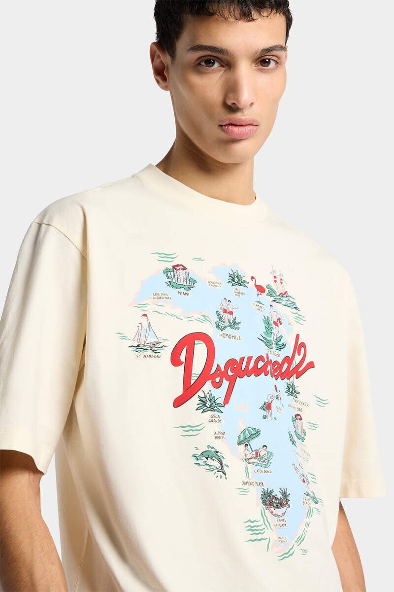Hop on Board the Summer Vibes. This Loose-Fit Tee is a Modern Classic, Featuring the Aloha Souvenir Print with the Dsquared2 Logo in a 1950S-Inspired Design for a Nostalgic Edge. Pair It with Pants and Sneakers for Laid-Back Summer Style.