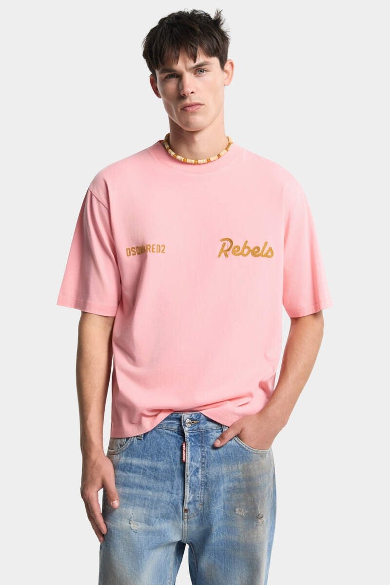 Cut from Midweight Cotton in a Loose, Boxy Fit, This Crew-Neck Tee Oozes Attitude with Its Bold Dsquared2 Logo and “Rebels” Lettering Displayed on the Front. Cuff the Sleeves to Further the Laid-Back Vibe.