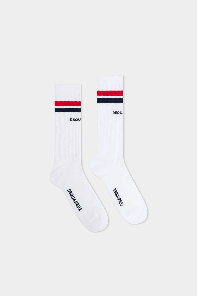 Detail Makes the Difference. Complete Your Outfit with These Mid-Crew Socks, Embellished with Our Signature Dsquared2 Logo and a College-Inspired Stripe Motif. Crafted from Stretchy Ribbed Cotton for Exceptional Comfort.
