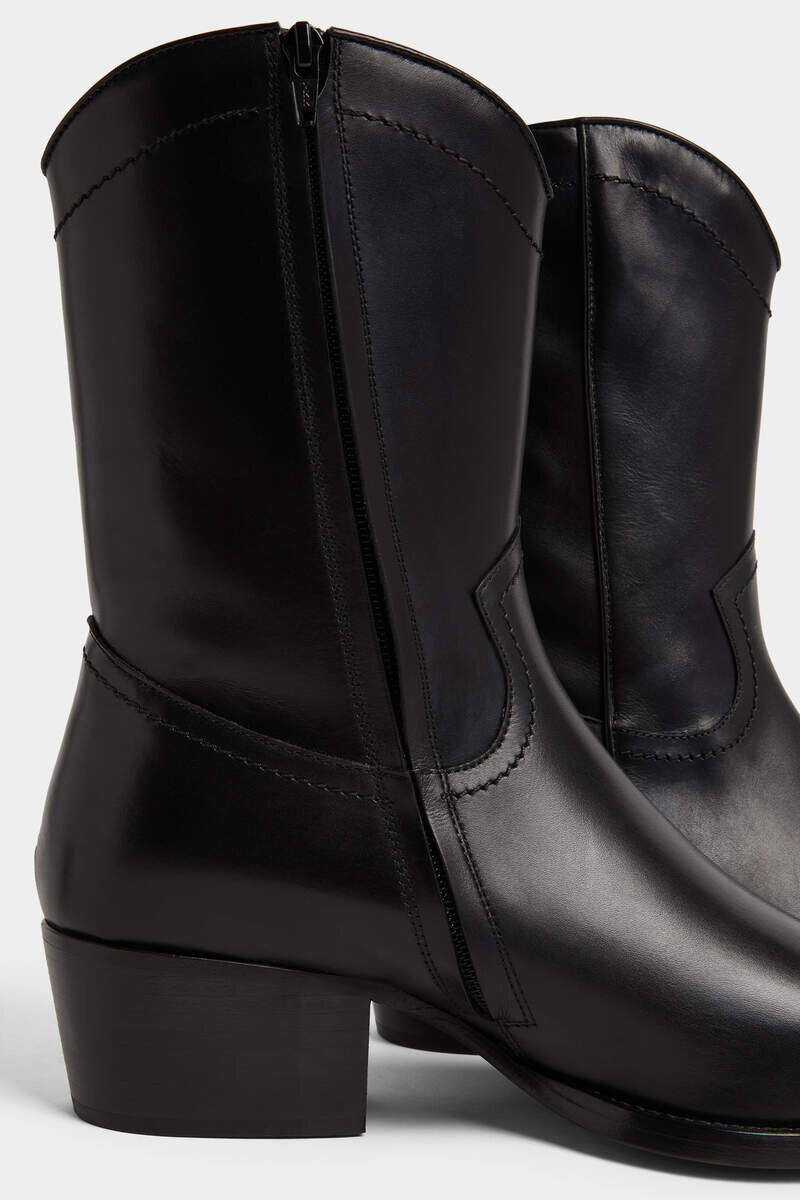 Ankle Boots Inspired by Cowboy Footwear Are a Must. This Leather Style, Characterised by Matching Stitching, Has a Tapered Toe and a 4Cm Cuban Heel. The Upper Ends with an Arched Shape and This Unusual Feature Suggests Wearing It Not Only with Jeans, but Also with Shorts and Bermuda Shorts.