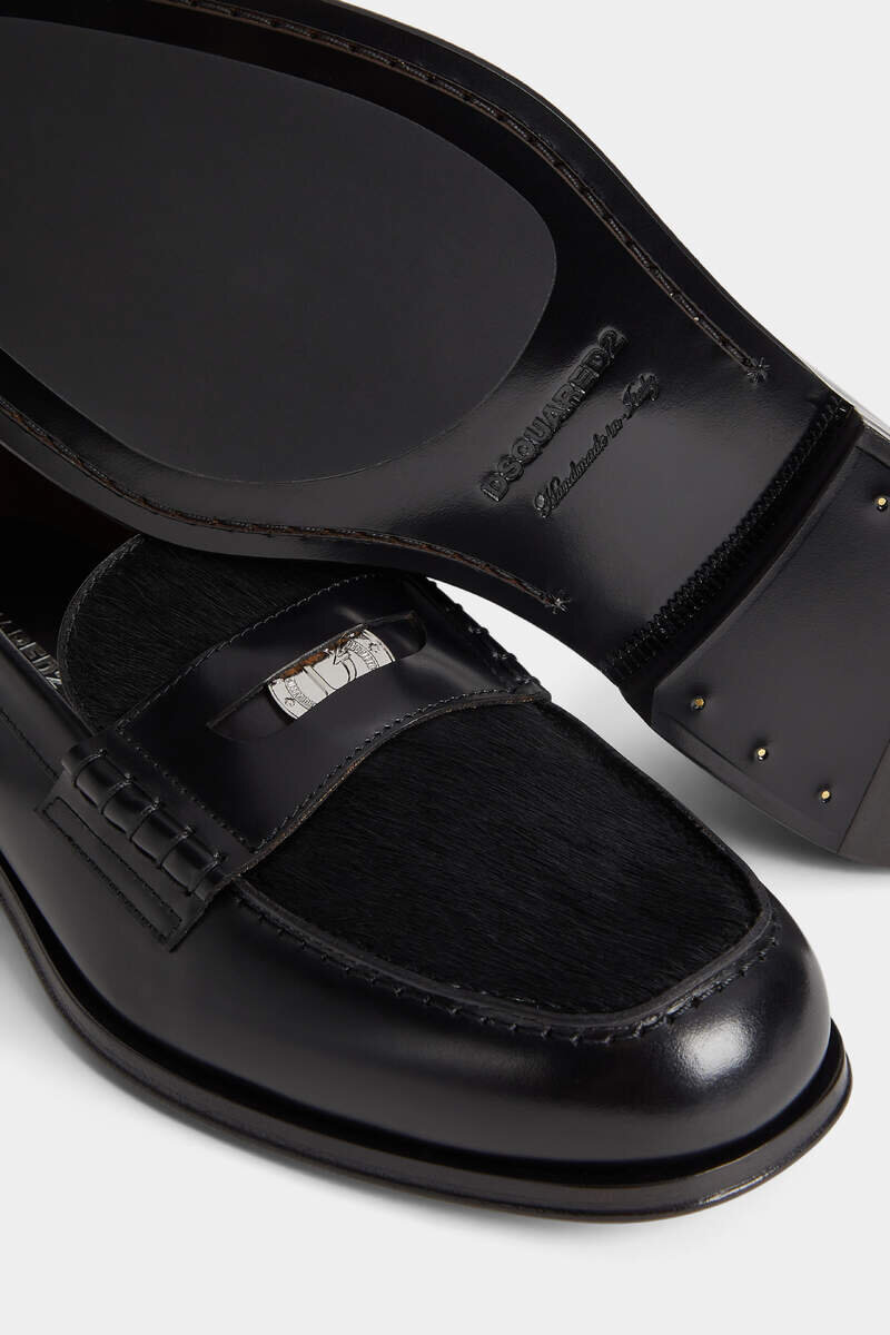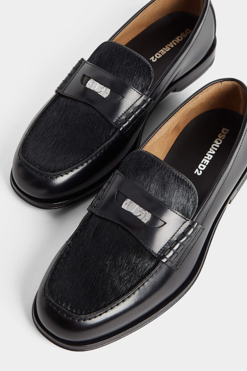 Classic Meets Contemporary. Flaunting a Minimalist Design with Subtle Stitching, This Understated Leather Loafer is Elevated with a Ponyhair Toe. It Even Features a Custom Dsquared2 Penny in the Saddle Strap Too.