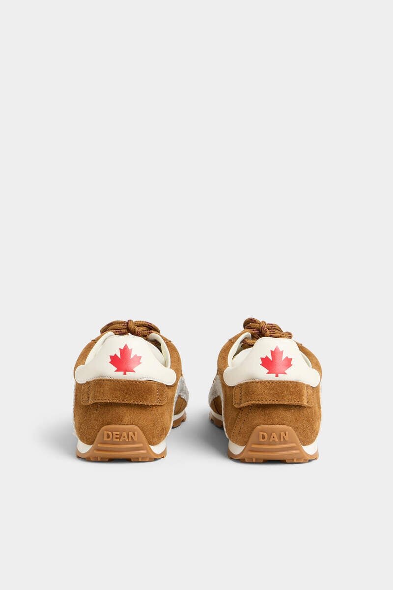 Destination: Dsquared2. Suede Sneakers Reimagined with Hiking-Style Double Laces Wrapped Through a Maple-Leaf Outsole Groove, Set on Signature Soles. A Raised “Dean” and “Dan” Heel Leaf Seals the Look with Craftsmanship and Distinctive Attitude.