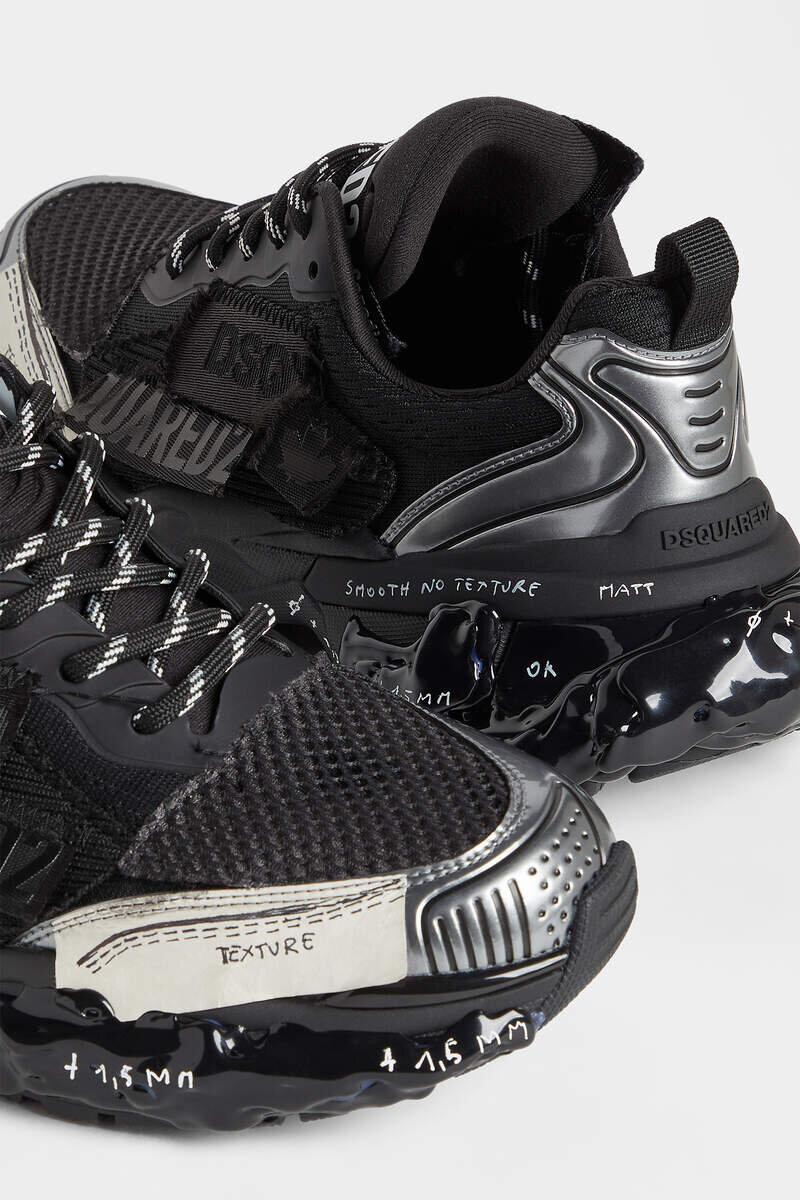 Bring Futuristic Energy to the City Streets in This Mesh Running Sneaker, Marking Every Stride with Rugged Overlays and Metallic Details. Its Deconstructed Sole is at Once Sporty and Avant-Garde, Embellished with Scribbled Text for a Statement Touch.