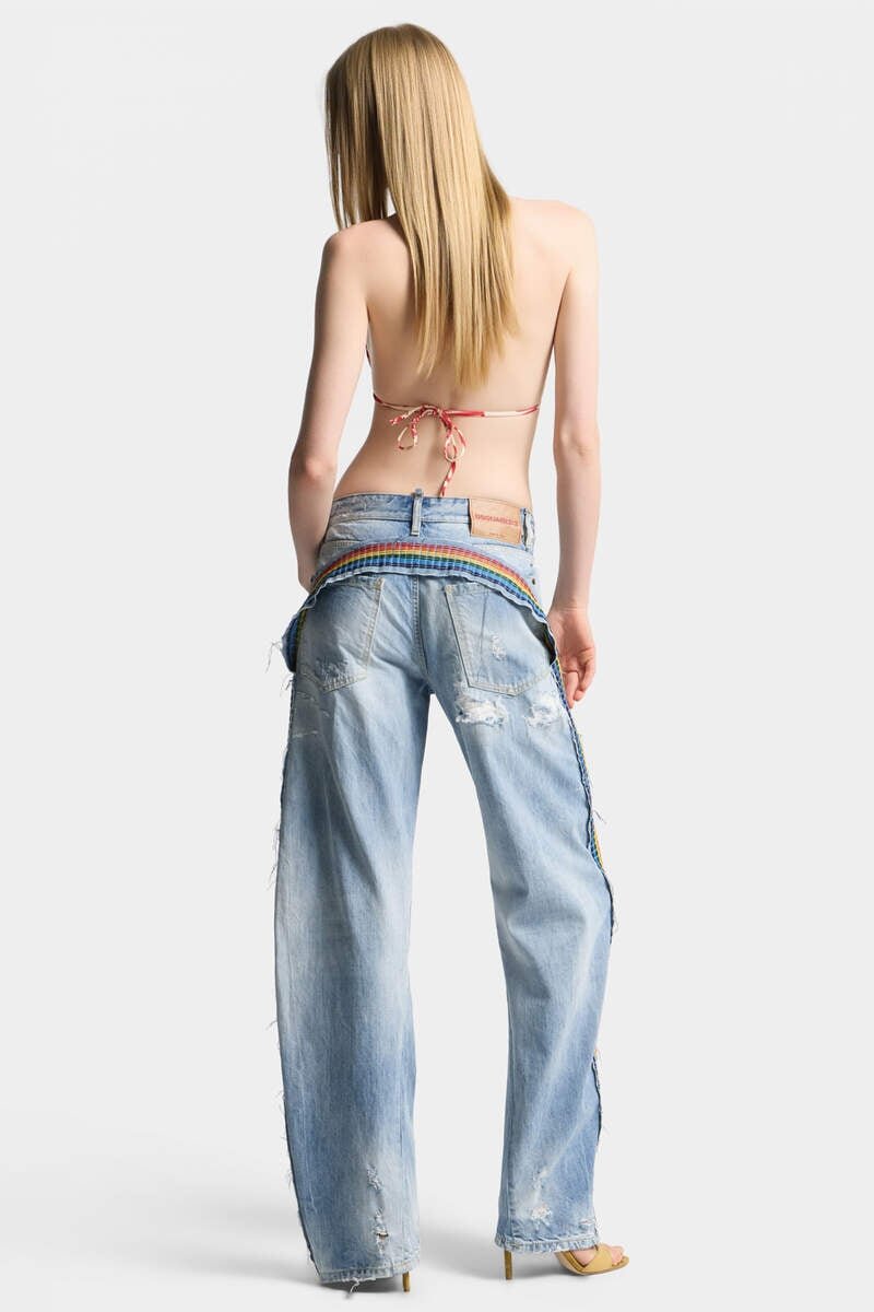 Anything but Understated: These Jeans Are Cut from Sturdy 12 Oz Denim with a Heavily Distressed Finish, Framed by Impossible-To-Miss Rainbow Stripes. The Subtly Curved, Wide Legs Are Meant to Sit Comfortably on the Hips.