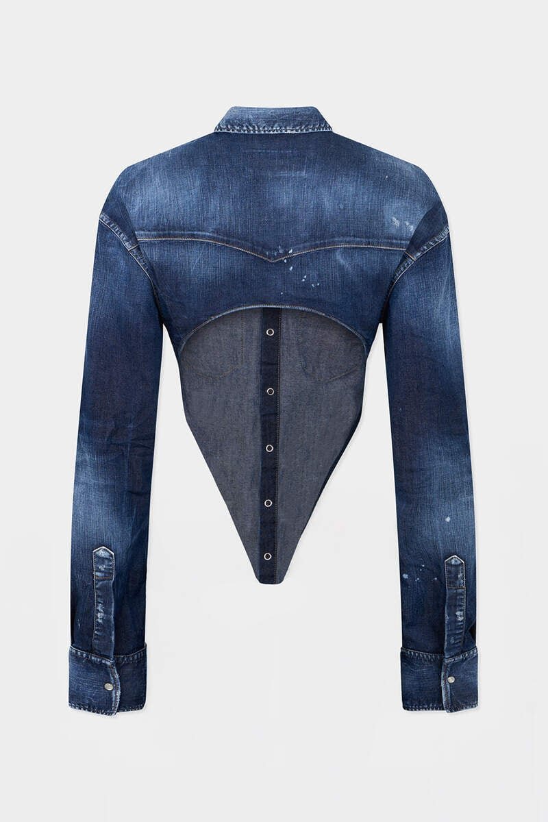 Denim Staple, Done Differently. The Deep Cut Shirt Reworks the Classic with an Open Back, Finished with Buttons That Fasten into a Seamless Loop Detail. Style with a Chunky Belt and Jeans for Ultimate Denim Attitude.