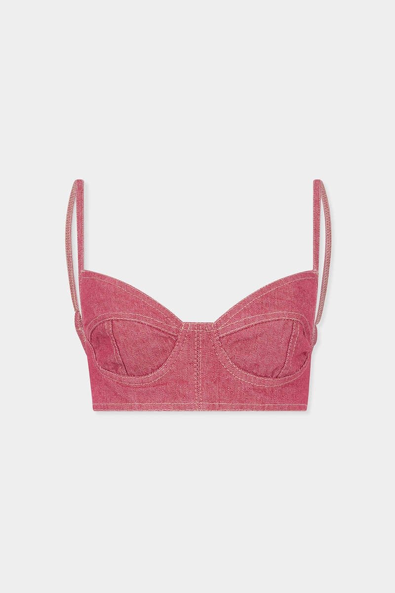 No Shirt, No Problem: This Bra Top is Crafted from Oxford Denim, Washed for Softness and Cut with a Flattering Neckline and Thin Spaghetti Straps. Style It with Cargo Trousers and Boots for a Festival-Ready Look.