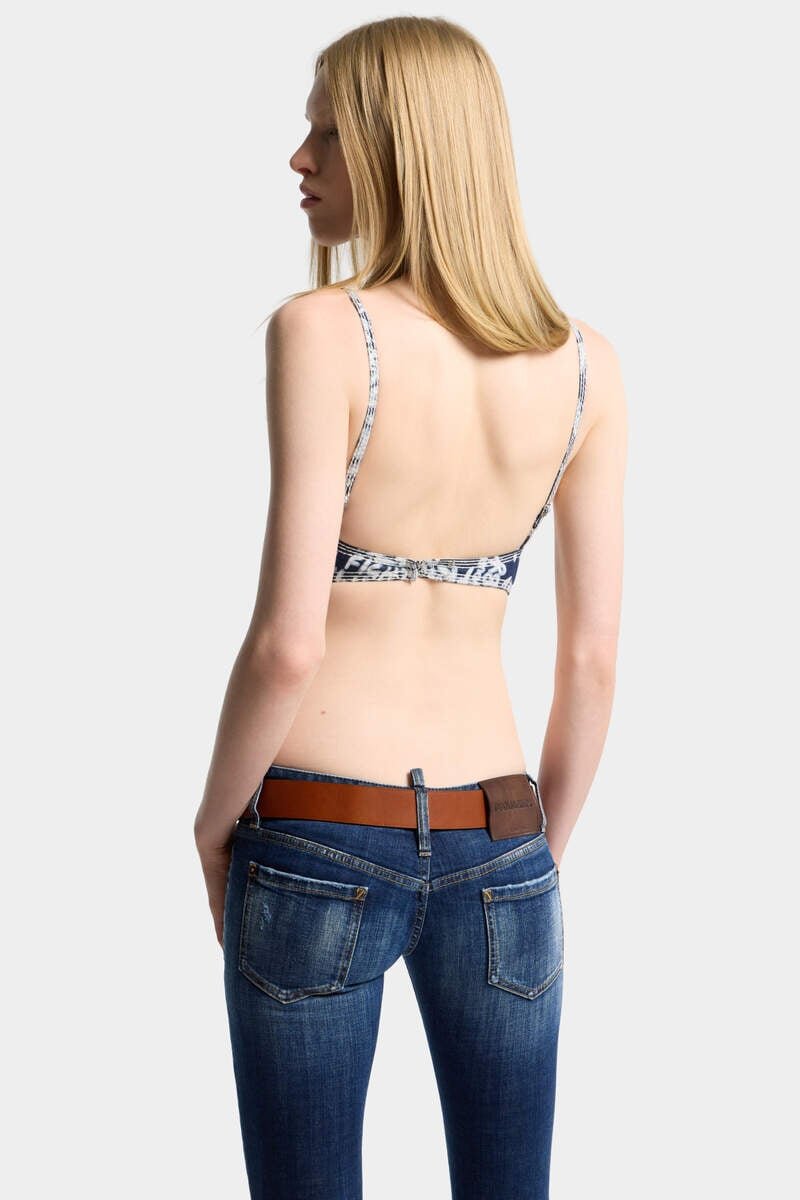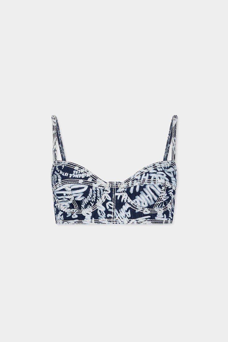 The Coolest Thing You’ll Wear This Summer: This Bra Top Features the Season’s Recurring Hibiscus Print Blooming Across 10 Oz Denim with a Tropical Flair. Style It Under Oversized Shirts or Boxy Blazers for an Effortless Contrast.