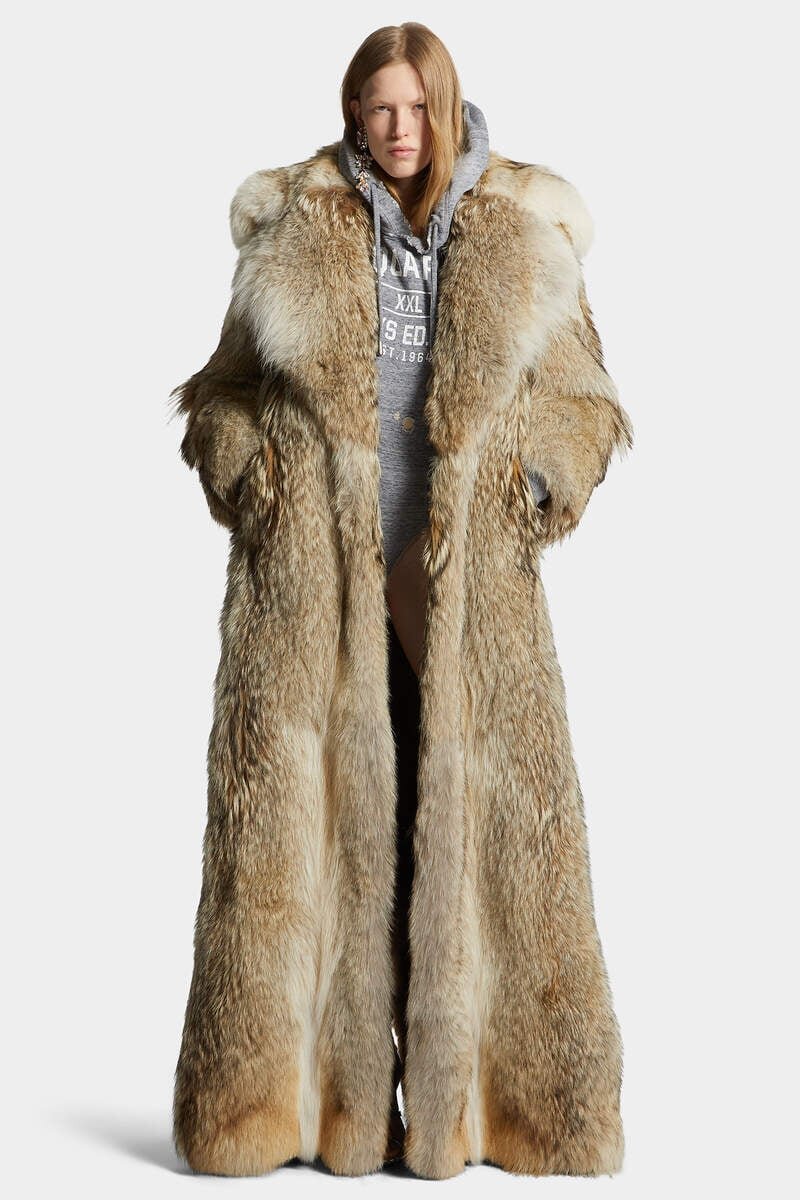 This Longline Coat is the Epitome of Cold-Weather Chic, Engulfing the Body in Gloriously Tactile Faux Coyote Fur. Styled with Maxi Lapels, It Layers Effortlessly over Trousers, Dresses and Everything in Between.