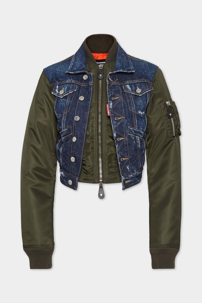 Trucker Meets Bomber in a Seamless Mash-Up of Styles. This Hybrid Jacket is the Best of Both Worlds. A Two-Way Zip Closure Ensures Serious Versatility, While Our Signature Red Label Adds a Distinctive Dsquared2 Touch.