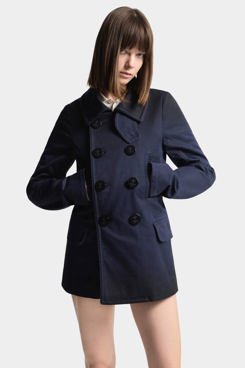 An Irreverent Blend of Masculine and Feminine Influences – This Peacoat is Defined by Its Double-Breasted Front and Classic Collar with a Buttoned Chin Strap. It’s Cut from Crisp Cotton Drill with a Hint of Stretch for Easy Layering.