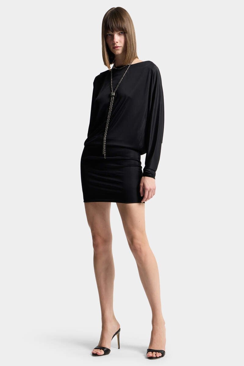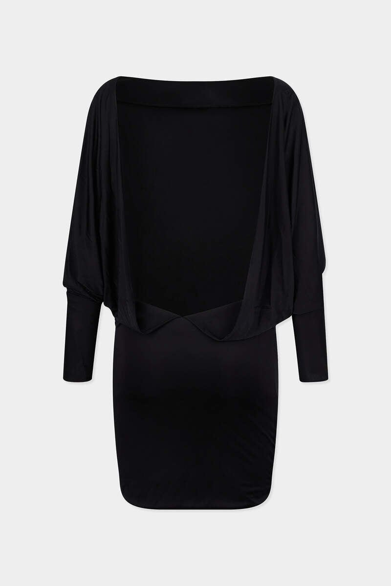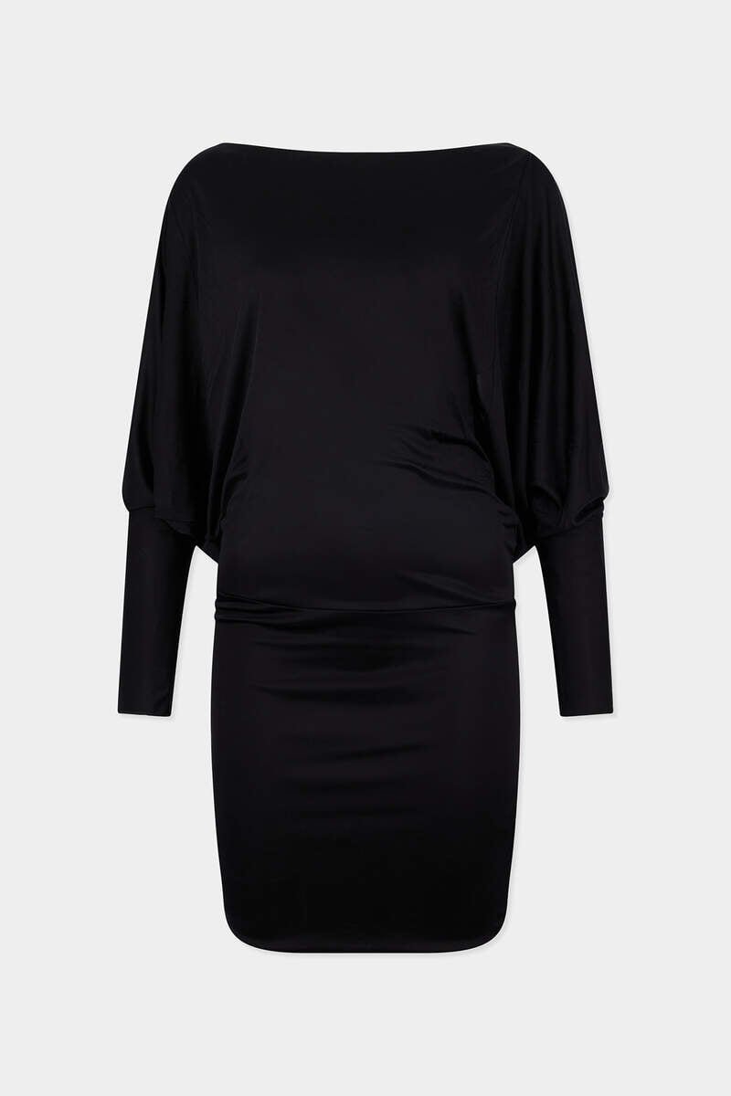 Always a Showstopper: This Mini Dress is Crafted from Shiny Viscose Jersey with Dramatic Batwing Sleeves That Balance the Mini Hemline. The Glamorous Backless Design Reveals Just the Right Amount of Skin as You Head out to Dinner.