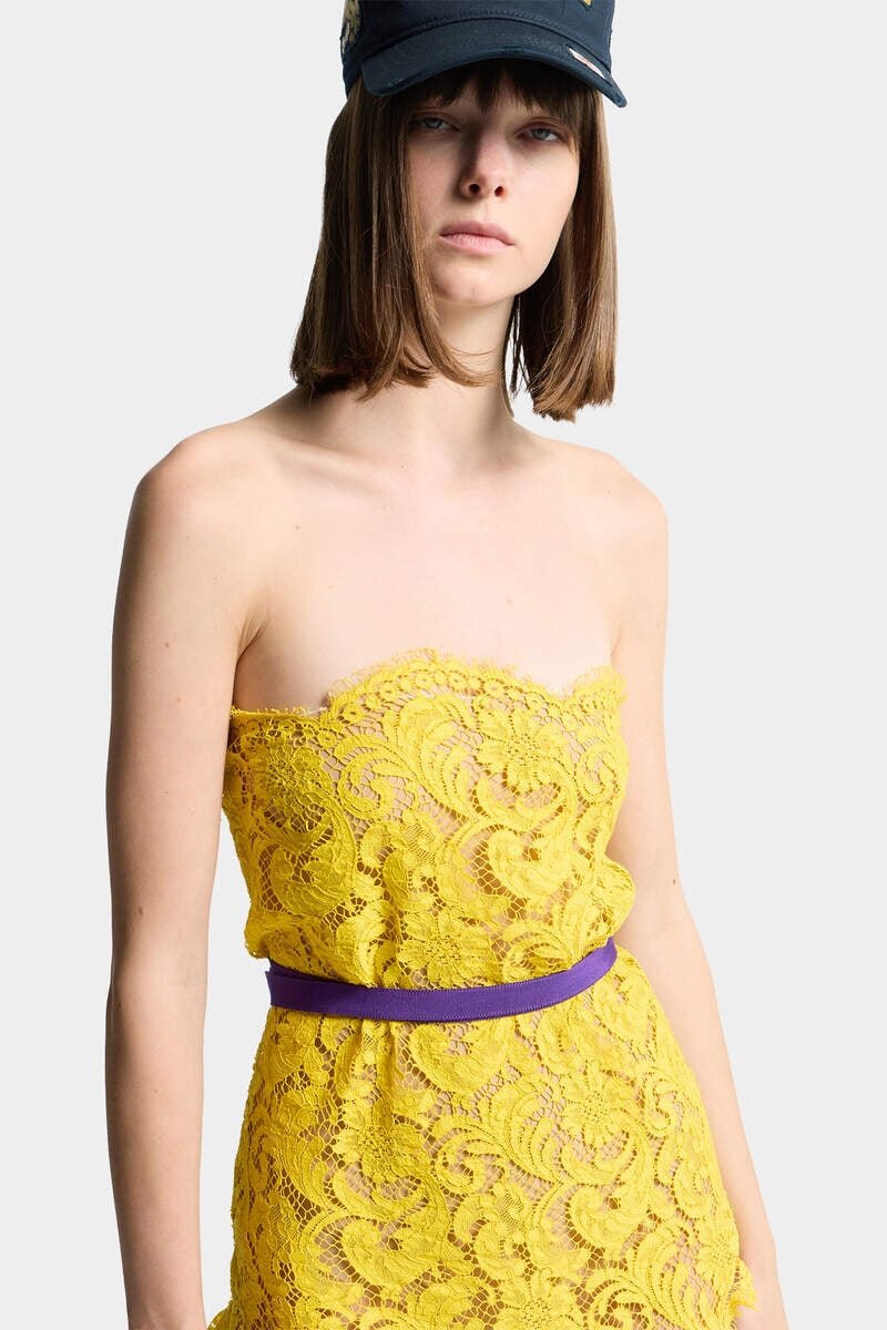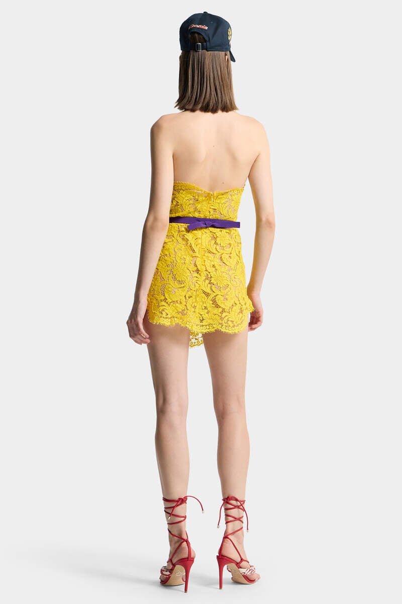 Precious Yet Playful, This Mini Dress is Crafted from Intricate Lace and Finished with a Curved Hem for a Dose of Contemporary Flair. The Detachable Belt Cinches the Waist, Allowing You to Create a More Defined Silhouette.