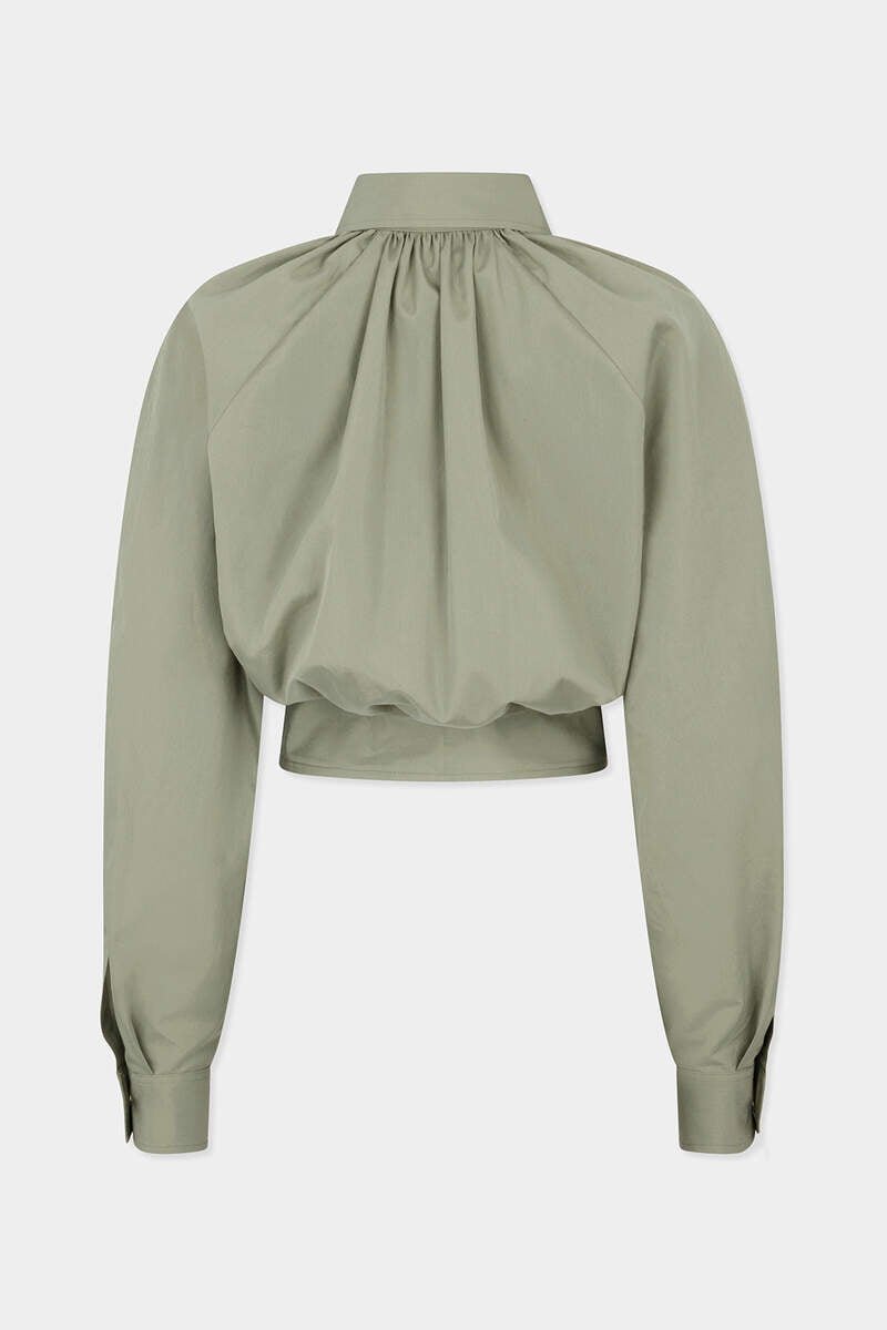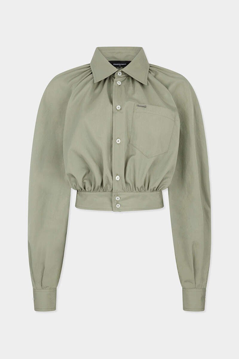 A Crisply Tailored Piece with Whimsical Undertones: This Shirt is Crafted from Classic Cotton Poplin in a Cropped Silhouette with Voluminous Raglan Sleeves and a Gathered Yoke for a Flattering Effect. Pair with Low-Slung Denim and Boots.