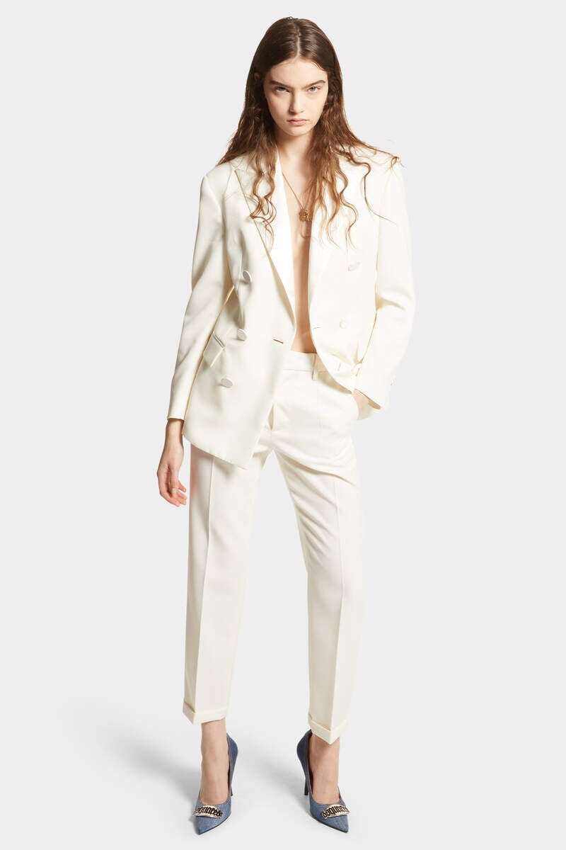 These Double-Breasted Jacket and Cigarette Pants Are Shaped to the Female Form, Enhancing the Silhouette. A Set That Can Be Worn Both During the Day and for Special Evenings. Best to Add Accessories with Colorful Details.
