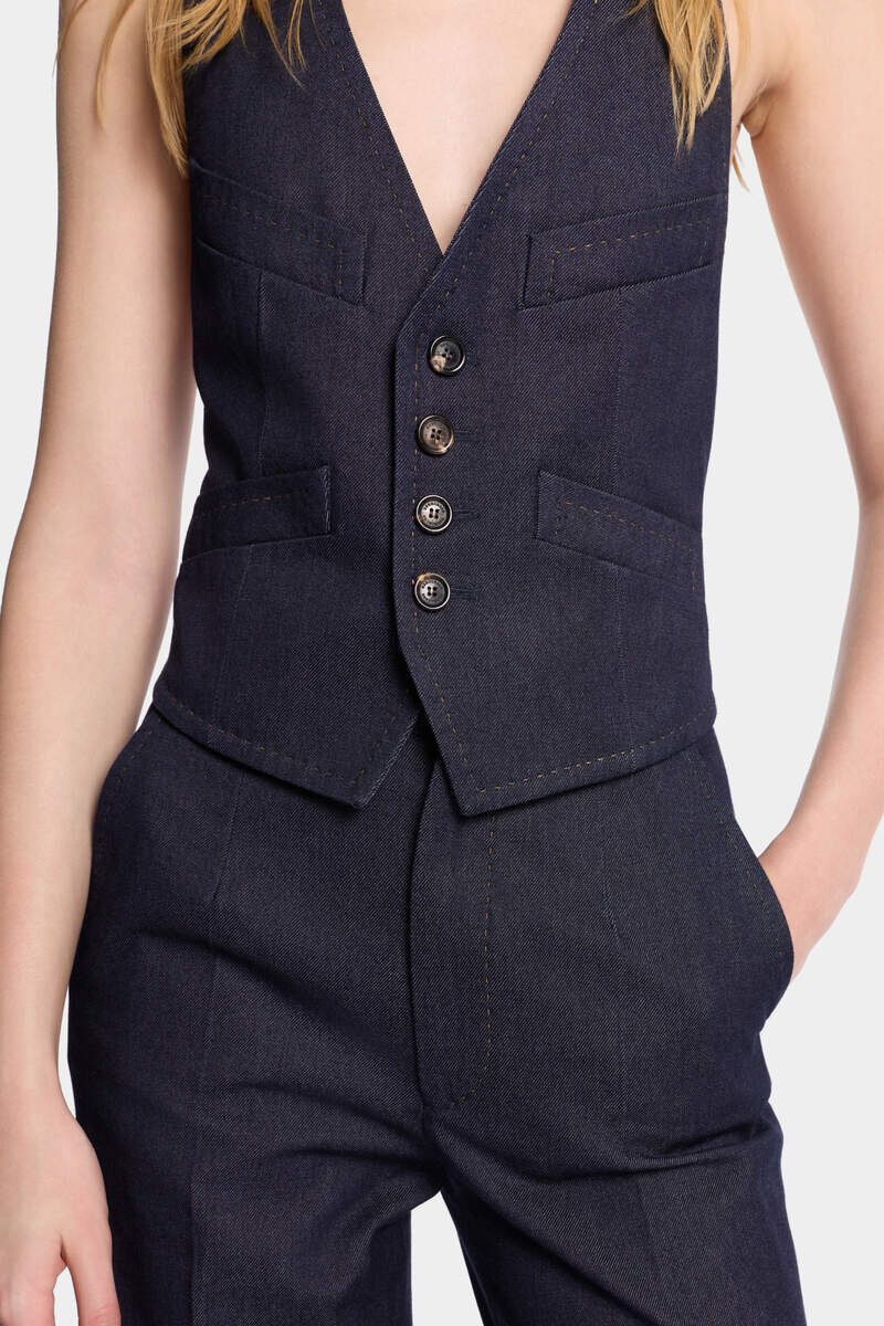 Dsquared2 Redefines Power Dressing with This Three-Piece Suit, Comprising a Single-Breasted Blazer Styled with a V-Neck Waistcoat and Matching Trousers. Crafted from 10 Oz Denim That’s Elevated by Contrast Stitching – You’ll Wonder How You Lived Without It.