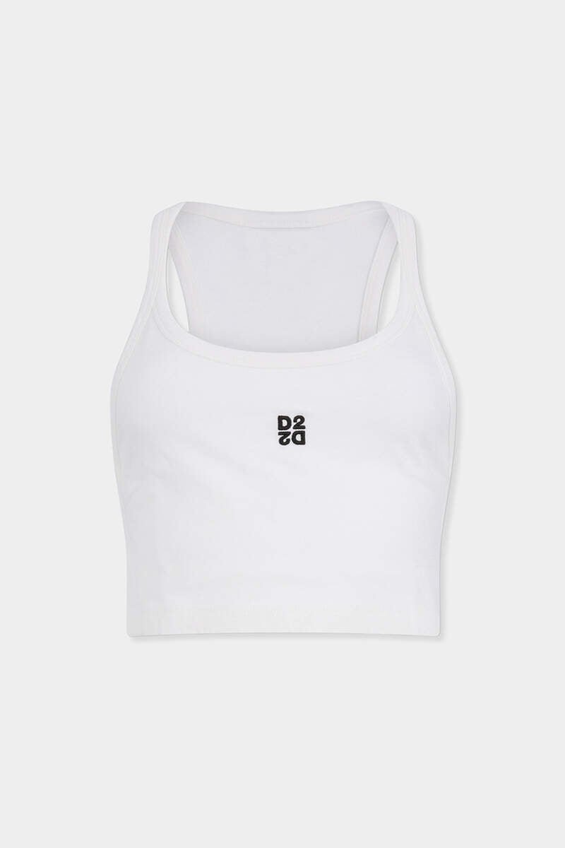 It’s Hot in Here! Crafted from Ribbed Cotton, This Tank Top Accentuates Your Every Curve with Its Cropped Body-Skimming Fit and Scoop Neckline – Decorated with the Subtle D2 Upside-Down Embroidery.