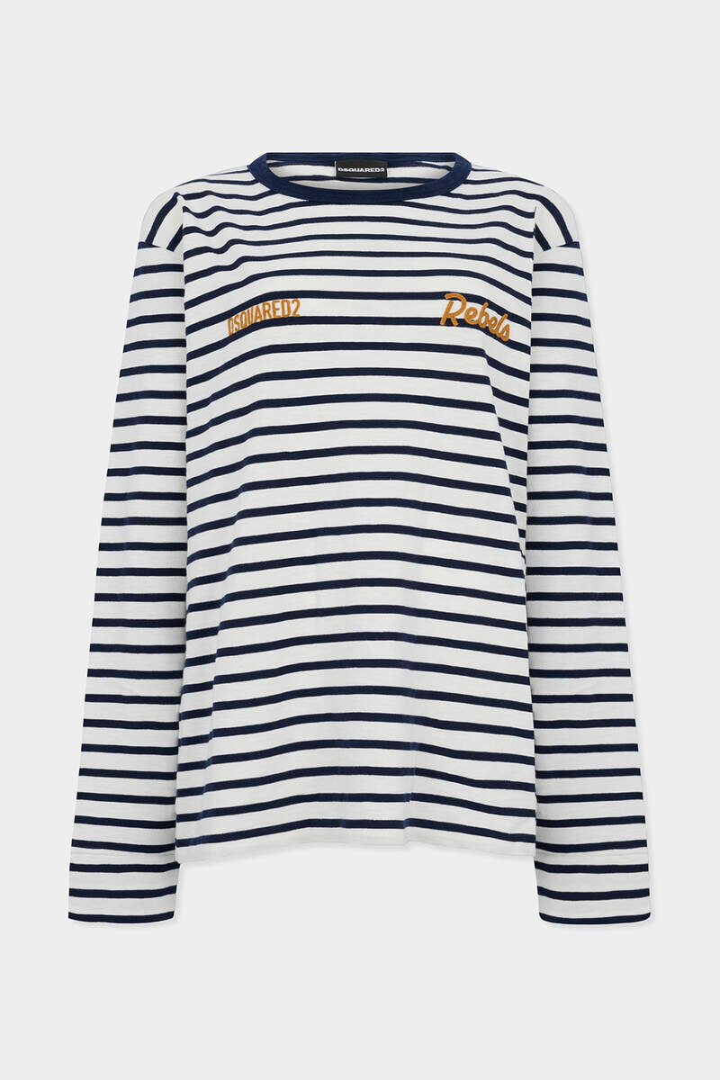 For Dsquared2 Rebels Only: This Long-Sleeved Tee is Cut from Striped Cotton Jersey Woven with Collegiate-Inspired Stripes. The Versatile Palette and Breezy Fit Make It Perfect for Warm Summer Days.