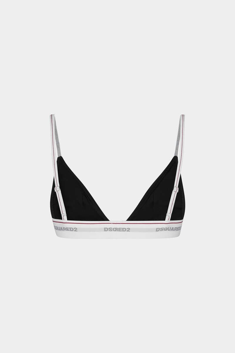 Sports-Inspired Triangle Bra Made of Stretch Cotton Jersey. The Elastic on the Band is Characterised by the Jacquard Workmanship of the Brand’s Lettering. The Elastic Straps Are Adjustable and There is a Hook Closure at the Back.