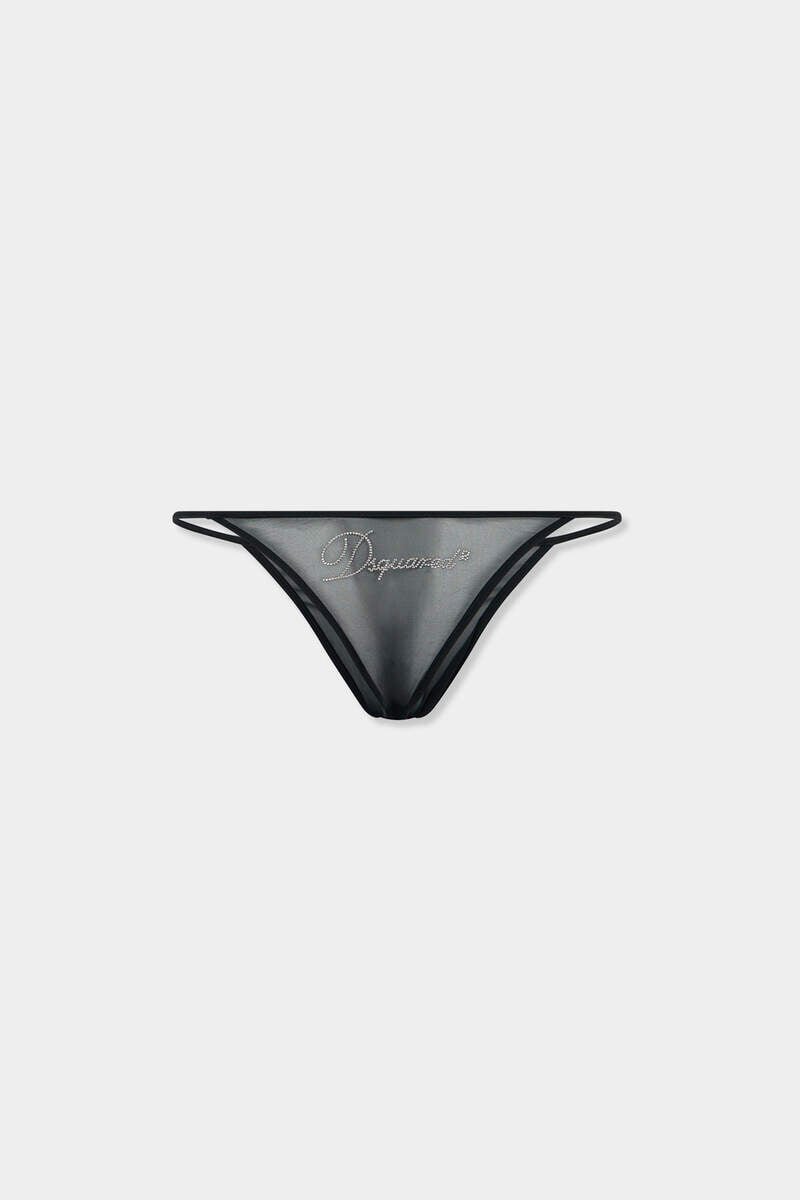 Special Occasions Call for Special Undies. These Barely-There Briefs Are Made from Sheer Skin-Bearing Nylon, Embellished with a Dsquared2 Embroidered Logo in Glittery Yarn.